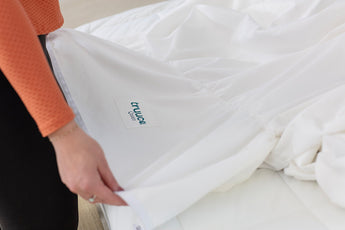Place fitted sheet on mattress with navigation patch at the foot of the bed.